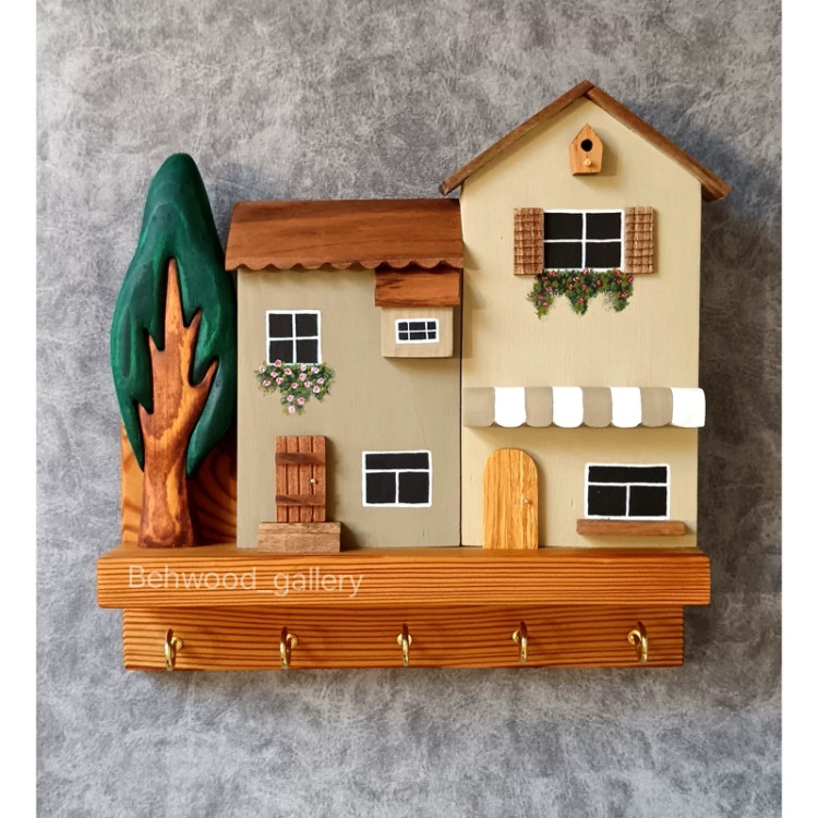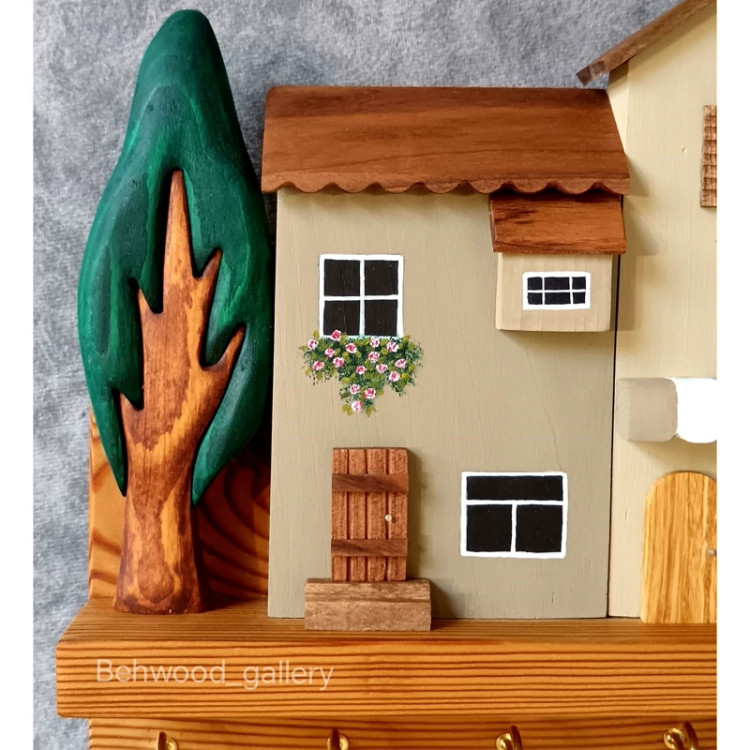 این محصول ساخته شده با چوب نراد میباشد و جزئیات کار با چوب گردو ساخته شده و تماما کار دست میباشد. دارای 5 قلاب آویز میباشد و در پشت کار دارای دو حلقه ی آویز جهت نصب آسان بر روی دیوار است. با توجه به دستساز بودن کار امکان مقدار کمی تفاوت در رنگ وجود دارد. (در صورت درخواست مشتری امکان تغییر در سایز یا رنگ وجود دارد.)
