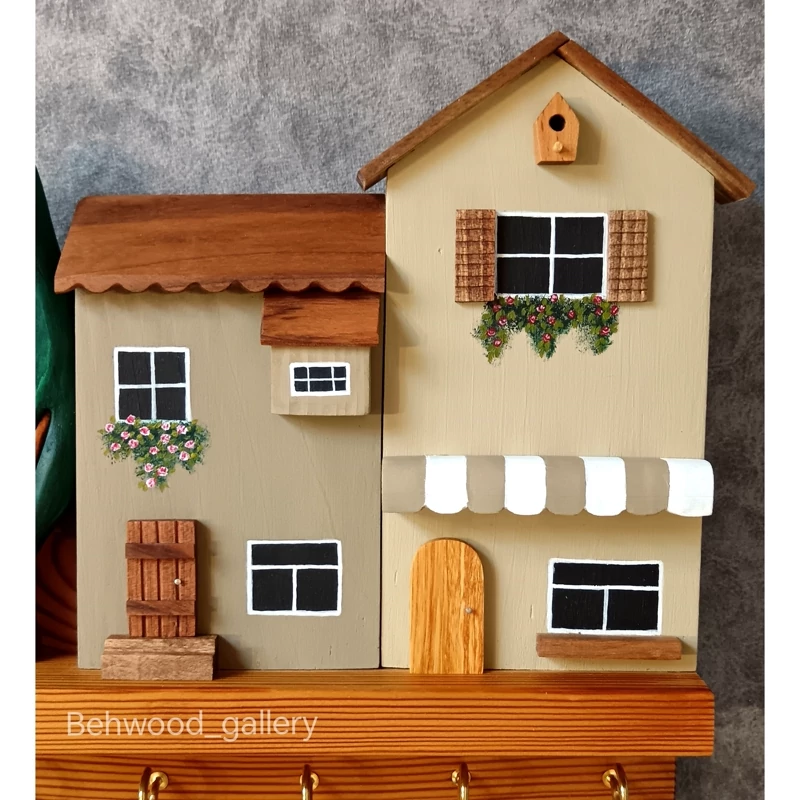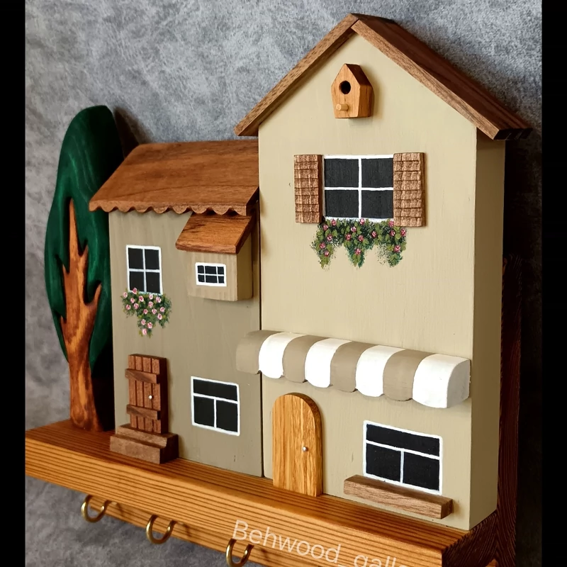 این محصول ساخته شده با چوب نراد میباشد و جزئیات کار با چوب گردو ساخته شده و تماما کار دست میباشد. دارای 5 قلاب آویز میباشد و در پشت کار دارای دو حلقه ی آویز جهت نصب آسان بر روی دیوار است. با توجه به دستساز بودن کار امکان مقدار کمی تفاوت در رنگ وجود دارد. (در صورت درخواست مشتری امکان تغییر در سایز یا رنگ وجود دارد.)
